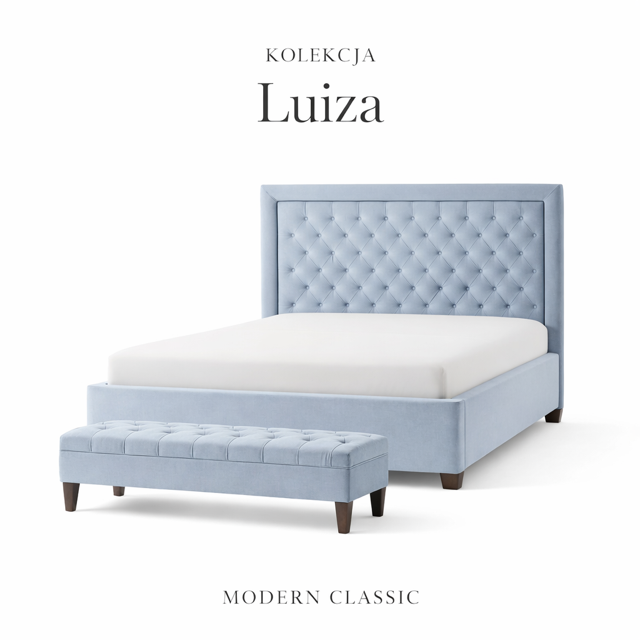 Wyjątkowo eleganckie pikowane zdobne łóżko z pojemnikiem na pościel. Obite wysokiej jakości delikatną i plamoodporną tkaniną welurową z możliwością dobrania koloru z dostępnej palety.