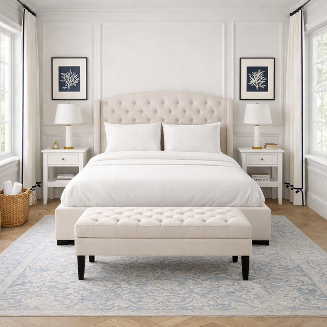 Elegancka ławeczka pikowana stworzona jako idealne uzupełnienie sypialni do postawienia przed łóżko South Hampton. Jej proporcje i wysokość zostały zaprojektowane tak, aby zapewnić maksymalny komfort podczas siadania i zakładania obuwia – idealnie sprawdzi się jako dodatkowe siedzisko.