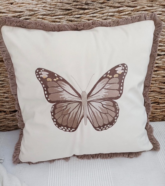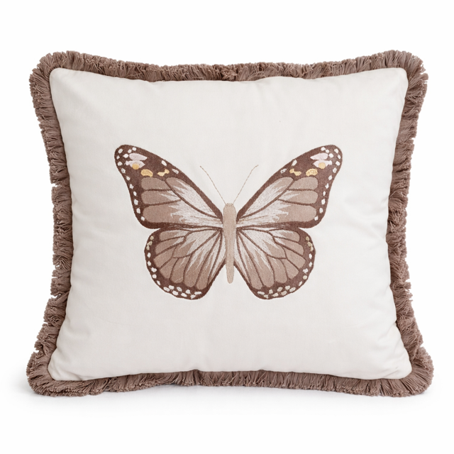 Poduszka dekoracyjna z motywem brązowego tropikalnego motyla