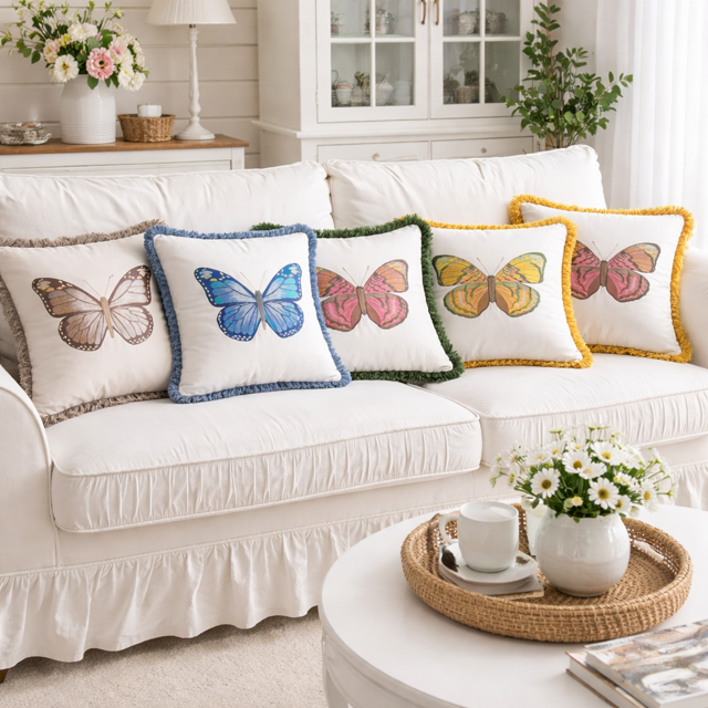 Wyjątkowa poduszka dekoracyjna wykonana z miękkiego, szlachetnego weluru, zachwyca oryginalnym wzorem kolorowego motyla w tropikalnym stylu. To propozycja dla osób, które cenią niebanalne dodatki i chcą wprowadzić do wnętrza odrobinę egzotyki oraz artystycznego charakteru.