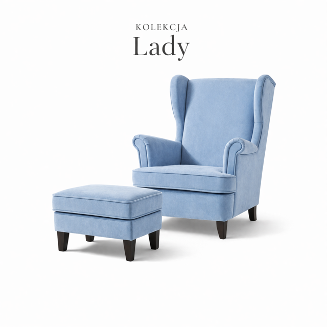 Elegancka pufa stworzona jako idealne uzupełnienie dużego fotela typu Uszak Lady. Jej proporcje i wysokość zostały zaprojektowane tak, aby zapewnić maksymalny komfort podczas wypoczynku – idealnie sprawdzi się jako podnóżek lub dodatkowe siedzisko.