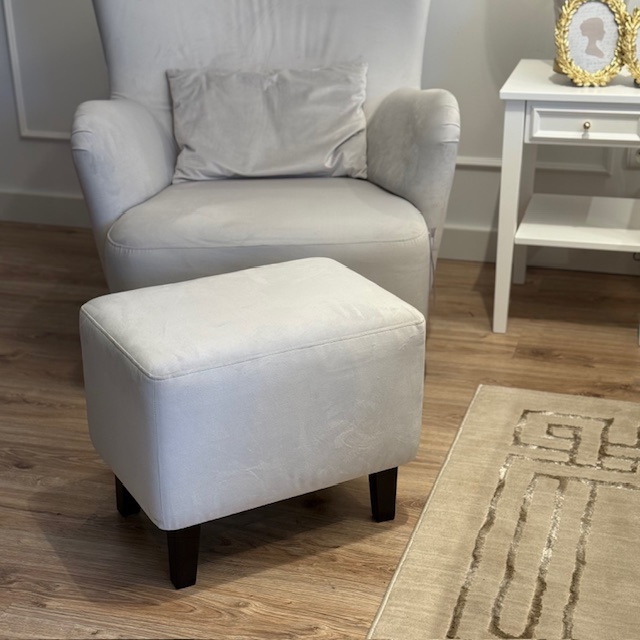 Model został obity miękką, stylową tkaniną welurową, która pięknie komponuje się z fotelami w tym samym wykończeniu, tworząc spójny i elegancki zestaw. Staranne wykonanie oraz dbałość o detale sprawiają, że pufa nie tylko świetnie wygląda, ale również zapewnia trwałość na lata.